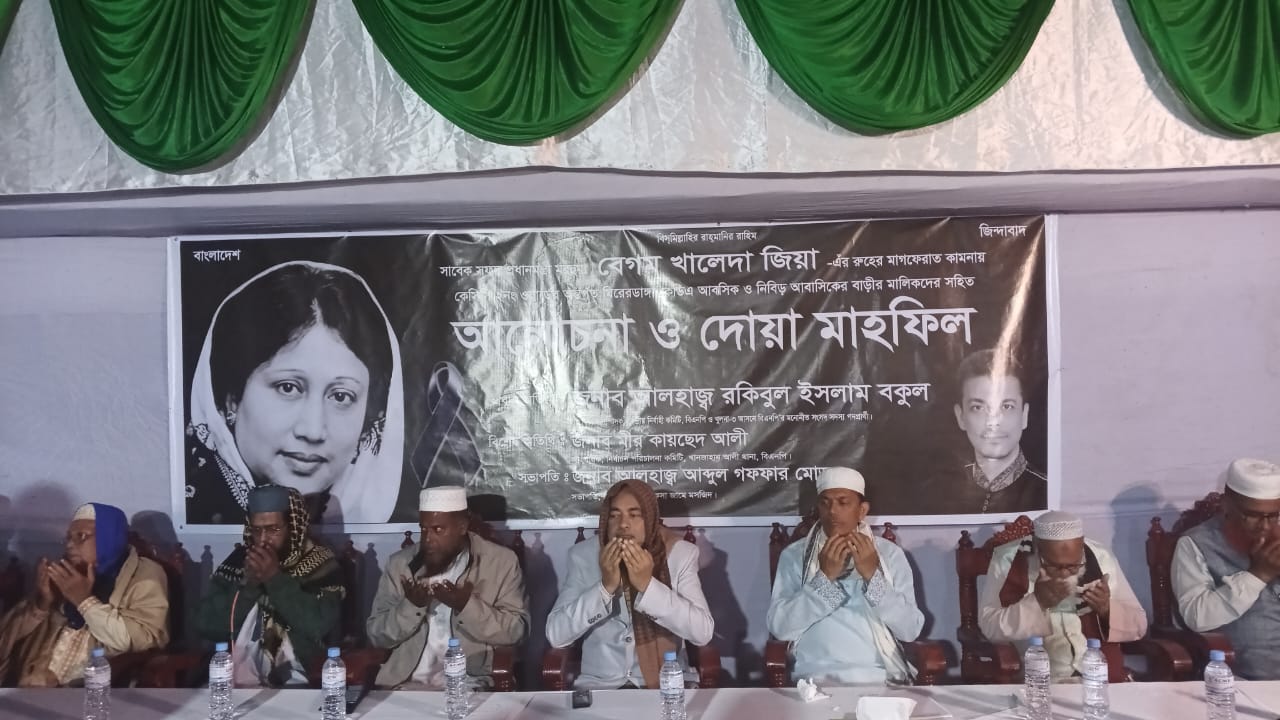 সাবেক প্রধানমন্ত্রী ও বিএনপি চেয়ারপার্সন বেগম খালেদা জিয়ার রুহের মাগফিরাত কামনায় নগরীর বাদামতলায় দোয়া মাহফিল অনুষ্ঠিত হয়। খানজাহান আলী থানাধীন মিরেরডাঙ্গা কেডিএ আবাসিক ও নিবিড় আবাসিক বাড়ির মালিকবৃন্দ এ দোয়া মাহফিল অনুষ্ঠানের আয়োজন করে।