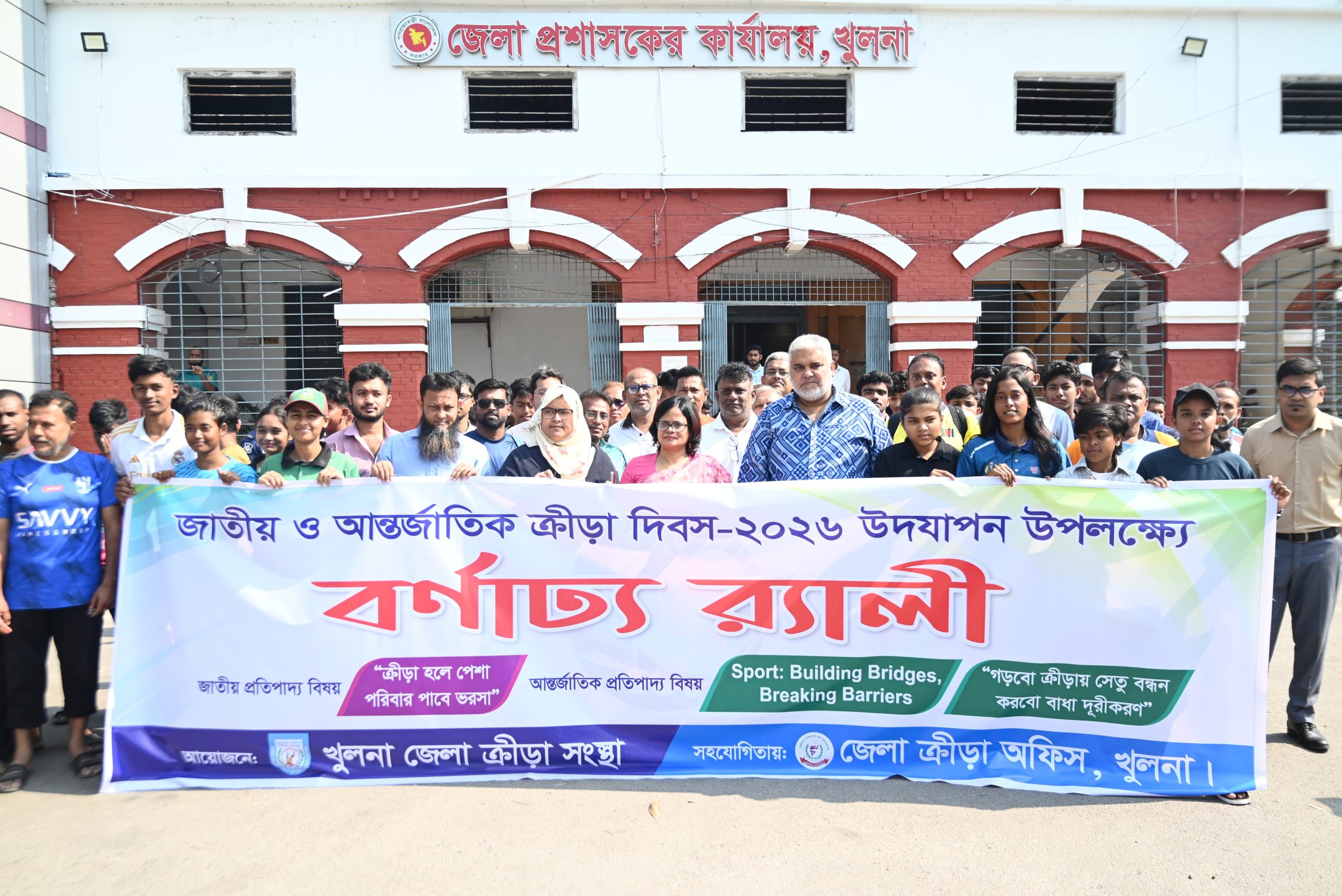 খুলনা নগরীতে জাতীয় ও আন্তর্জাতিক ক্রীড়া দিবস উপলক্ষে এক বর্ণাঢ্য র্যালি অনুষ্ঠিত হয়েছে। আন্তর্জাতিক ক্রীড়া দিবস উদযাপন উপলক্ষে আয়োজিত এ র্যালির আয়োজন করে জেলা ক্রীড়া সংস্থা, সহযোগিতায় ছিল জেলা ক্রীড়া অফিস।